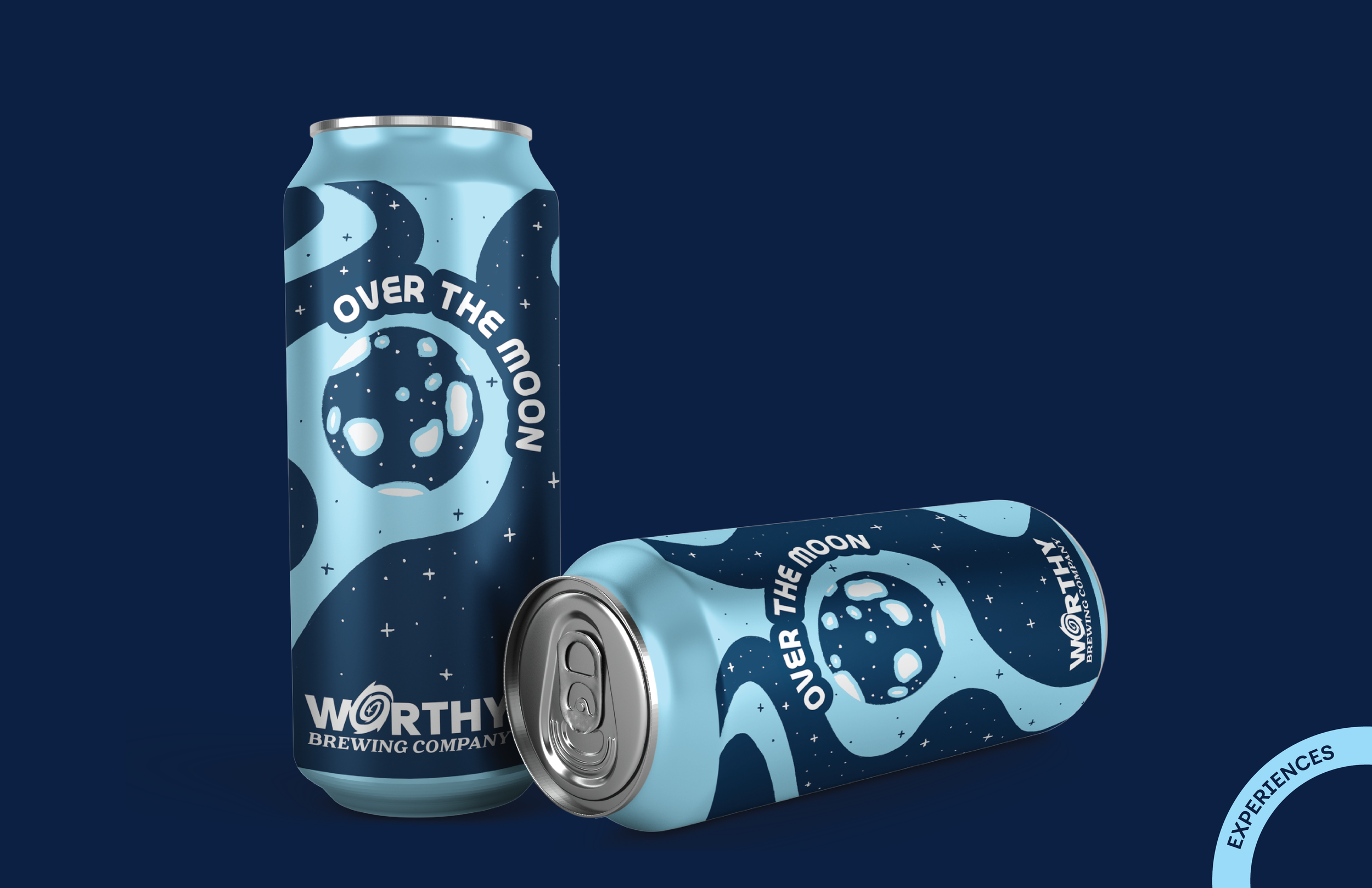 Worthy has always set out to be unique not only by having an operational observatory in its brewery but also by having the environment be the first priority. This new logo sets out to explain just that. Hops are expected in brewery logos, so this new logo helps showcase exactly what sets Worthy apart. The bold san serif typeface exemplifies the strength and support Worthy has in the Bend community and the serif sub-title shows its commitment to open communication and collaboration with the local environment and people.